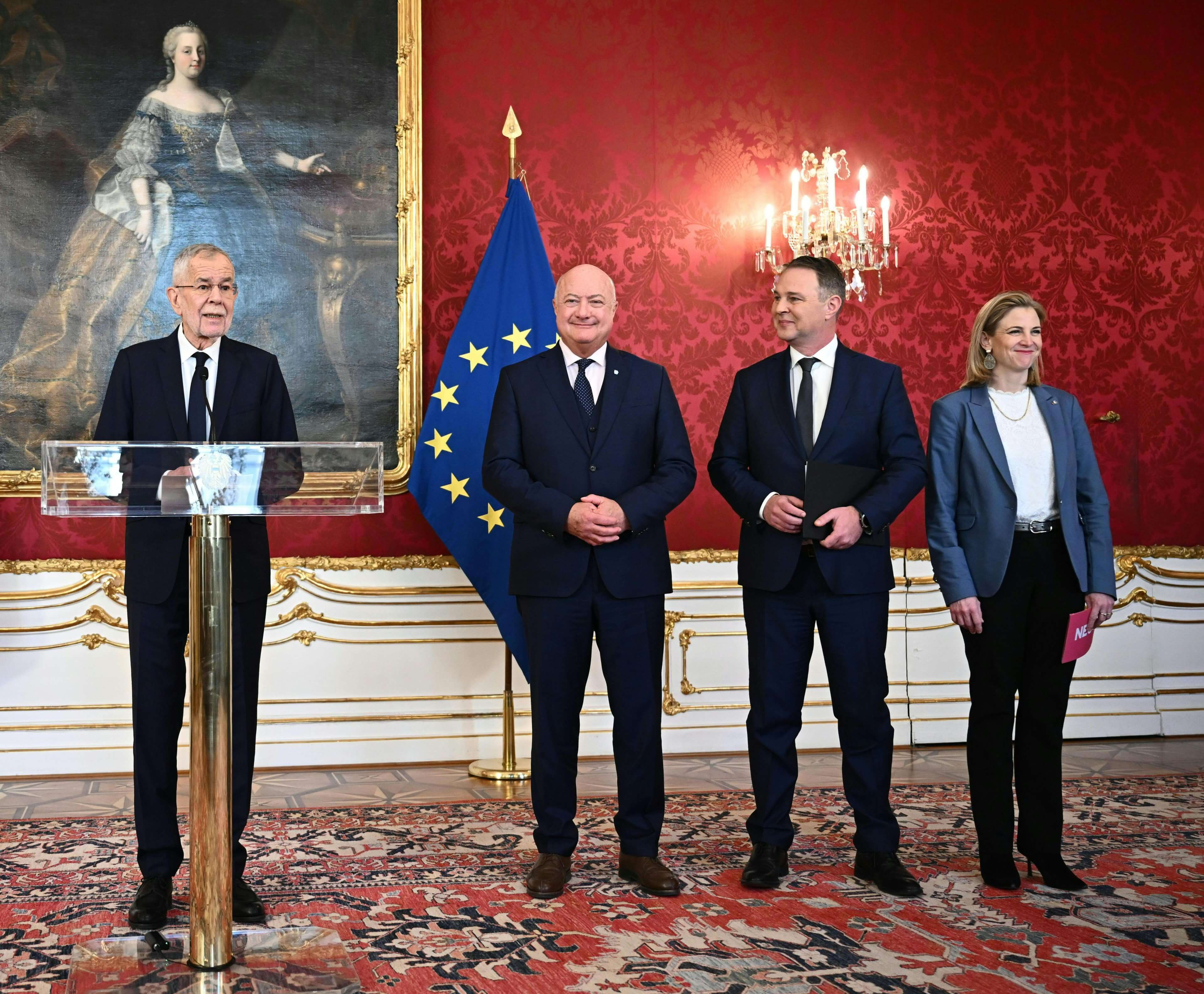 Die Chefs von ÖVP, SPÖ und NEOS trafen am Samstag Bundespräsidenten Van der Bellen in der Hofburg.APA/MAX SLOVENCIK