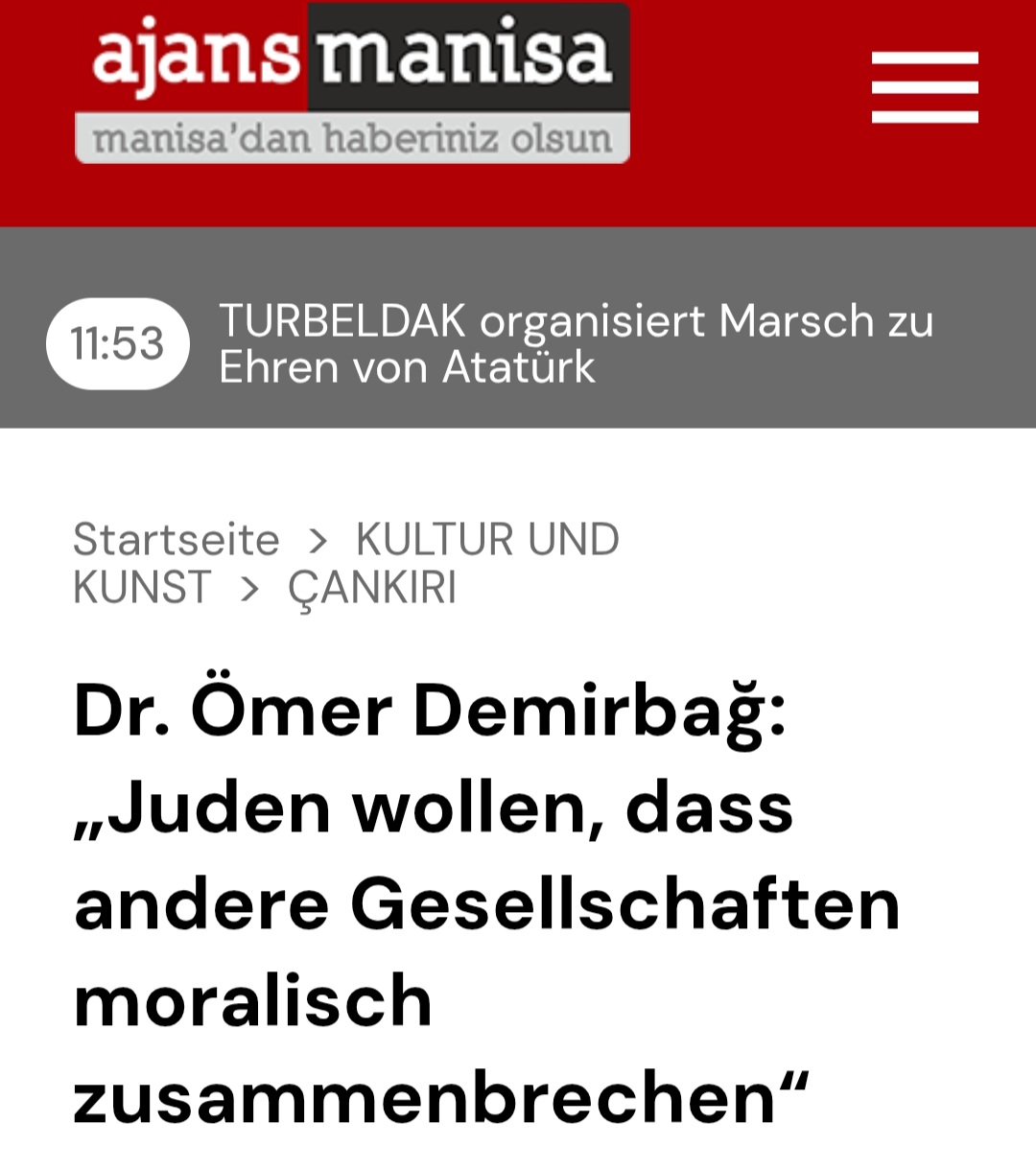 Im November 2023 erklärte der Dozent an der Universität der ostanatolischen Stadt Van laut einem Bericht der Online-Plattform „Ilkha” in einer Podiumsdiskussion: „Wenn man an Juden denkt, kommt einem im Lauf der Geschichte Verrat in den Sinn; es ist ihre nationale Eigenschaft.” Und weiter: „Was Moses als wahre Gnade für die Gläubigen brachte, wurde von ihnen verfälscht und bis heute als Vorwand für Kindstötungen benutzt.” Im Mai vergangenen Jahres dozierte Demirbağ an der Uni zentralanatolischen Çankiri: „Juden wollen, dass andere Gesellschaften moralisch zusammenbrechen“. Deshalb unterstützten sie weltweit die Rechte von LGBT-Personen.