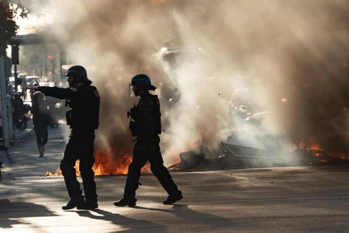 Laut der Gewerkschaft CGT versammelten die Protestaktionen etwa eine Viertelmillion Menschen. 23 Sicherheitskräfte seien leicht verletzt worden, teilte das französische Innenministerium mit. Es habe Hunderte Brände auf öffentlichen Straßen gegeben und “Störungen der öffentlichen Ordnung”. Die Demonstrationen seien im Laufe des Tages größer geworden, zahlreiche radikale Aktivisten hätten sich beteiligt. Besonders angespannt sei die Lage in Paris und den Städten Nantes und Rennes, wo es zu Angriffen auf Sicherheitskräfte gekommen sei.