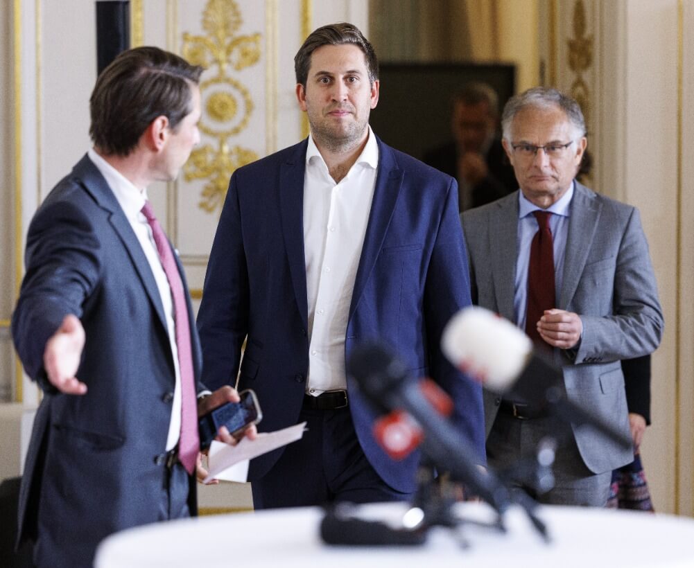 Staatssekretär Alexander Pröll (ÖVP) und Finanzminister Markus Marterbauer (SPÖ) verhandelten mit den Gewerkschaften. APA/