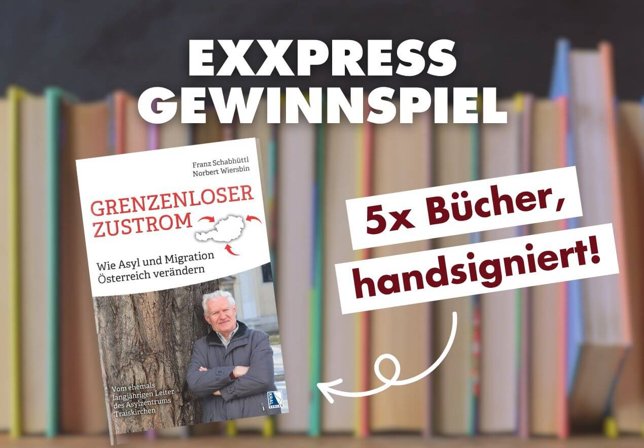 Der exxpress verlost fünf handsignierte Exemplare des Buches „Grenzenloser Zustrom“ von Franz Schabhüttl und Norbert Wiersbin – signiert von Franz Schabhüttl.