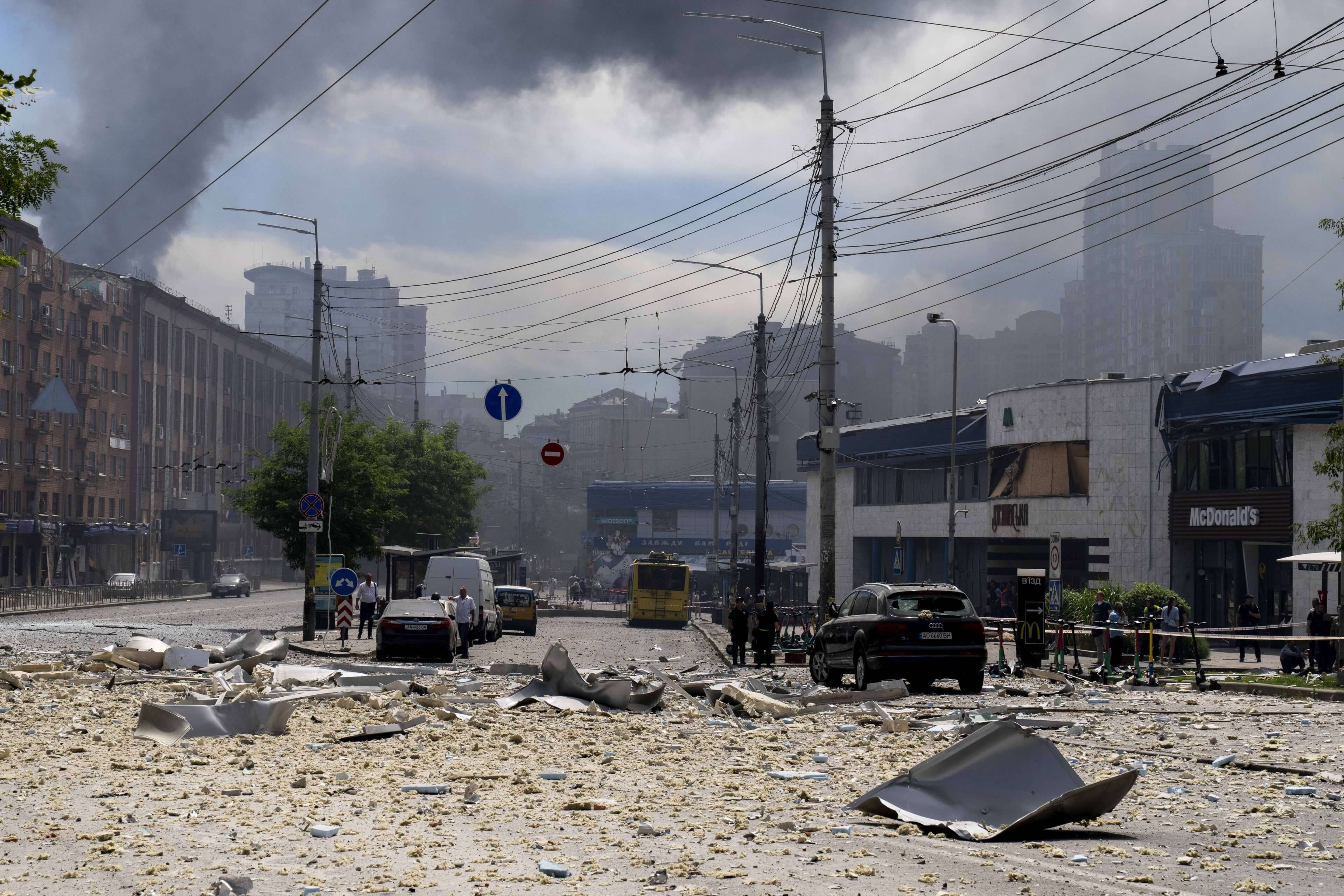 Russland griff mit fast 300 Drohnen und 69 Raketen an. Das Foto ist von einem Angriff auf Kiew im Sommer 2024.IMAGO/IMAGO / Andreas Stroh