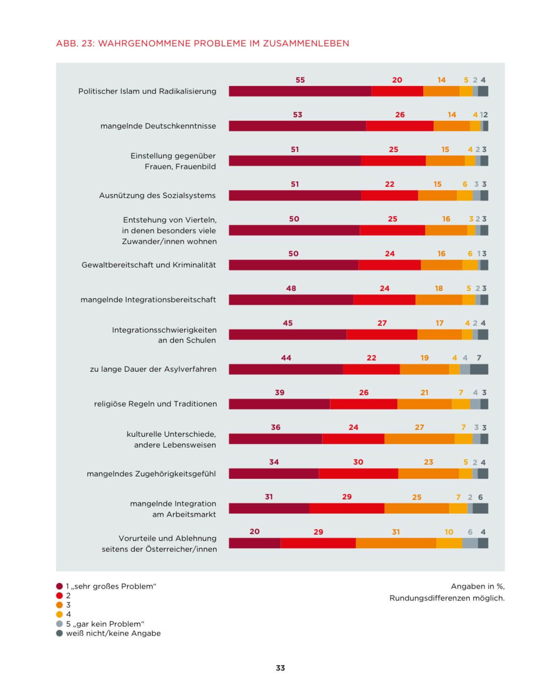 Ähnlich stark ausgeprägt sind die Sorgen über mangelnde Deutschkenntnisse und problematische Einstellungen gegenüber Frauen. Auch die Entstehung von Vierteln mit besonders vielen Zuwanderern wird kritisch gesehen – viele verbinden das mit Parallelstrukturen statt echter Integration.