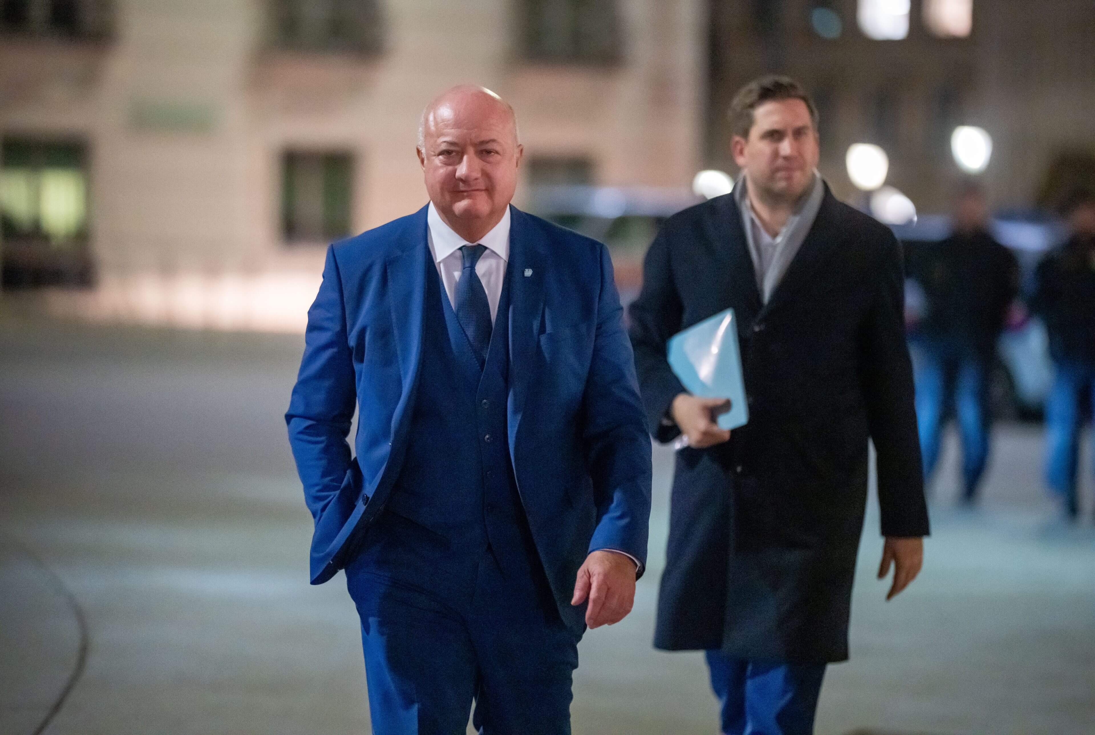 ÖVP-Chef Christian Stocker auf dem Weg zu einer Unterredung mit Bundespräsident Alexander Van der Bellen am Dienstagabend. Neben ihm ÖVP-Generalsekretär Alexander Pröll.APA/GEORG HOCHMUTH