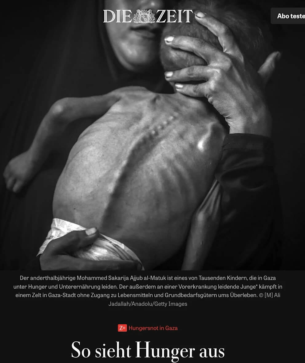 Der zweite Fall wurde vom britisch-israelischen Journalisten David Collier aufgedeckt: Es geht um den eineinhalbjährigen Mohammed Zakariya al-Matouq. Sein Bild ging um die Welt – ein bis aufs Skelett abgemagerter Körper, hervorstehende Rippen, regloser Blick. Das Kind wurde zum Symbol einer angeblich flächendeckenden Hungersnot im Gazastreifen. Die Zeit titelte: „So sieht Hunger aus.“