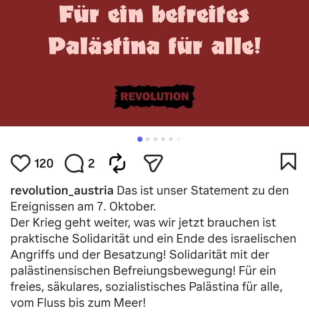 Auch „ROSA” soldarisiert sich auf Instagram mit den nicht zuletzt gegen das Kopftuch kämpfenden Frauen im Iran – und macht gleichzeitig mit beim Wiener Freundeskreis des Hijab. Auch bei der erklärtermaßen vom Trotzkismus und der russischen Oktoberrevolution beseelten RSO fällt es schwer, ein Motiv für die Beteiligung am Kampf gegen das Kopftuchverbot zu finden. Noch weniger bei der Gruppierung „LINKS”, die für eine „Vergesellschaftung der Produktionsmittel und die Überwindung von Lohnarbeit” kämpft und sich ganz besonders einsetzt für „FLINTA”, also für Frauen, Lesben, inter* bzw. nicht-binäre sowie trans und agender Personen. Diese Zielgruppe ist für Islamisten nur in dem Sinn ebenfalls eine, als man sie zur Hölle wünscht und im Extremfall eigenhändig auf den Weg dorthin befördert.