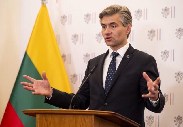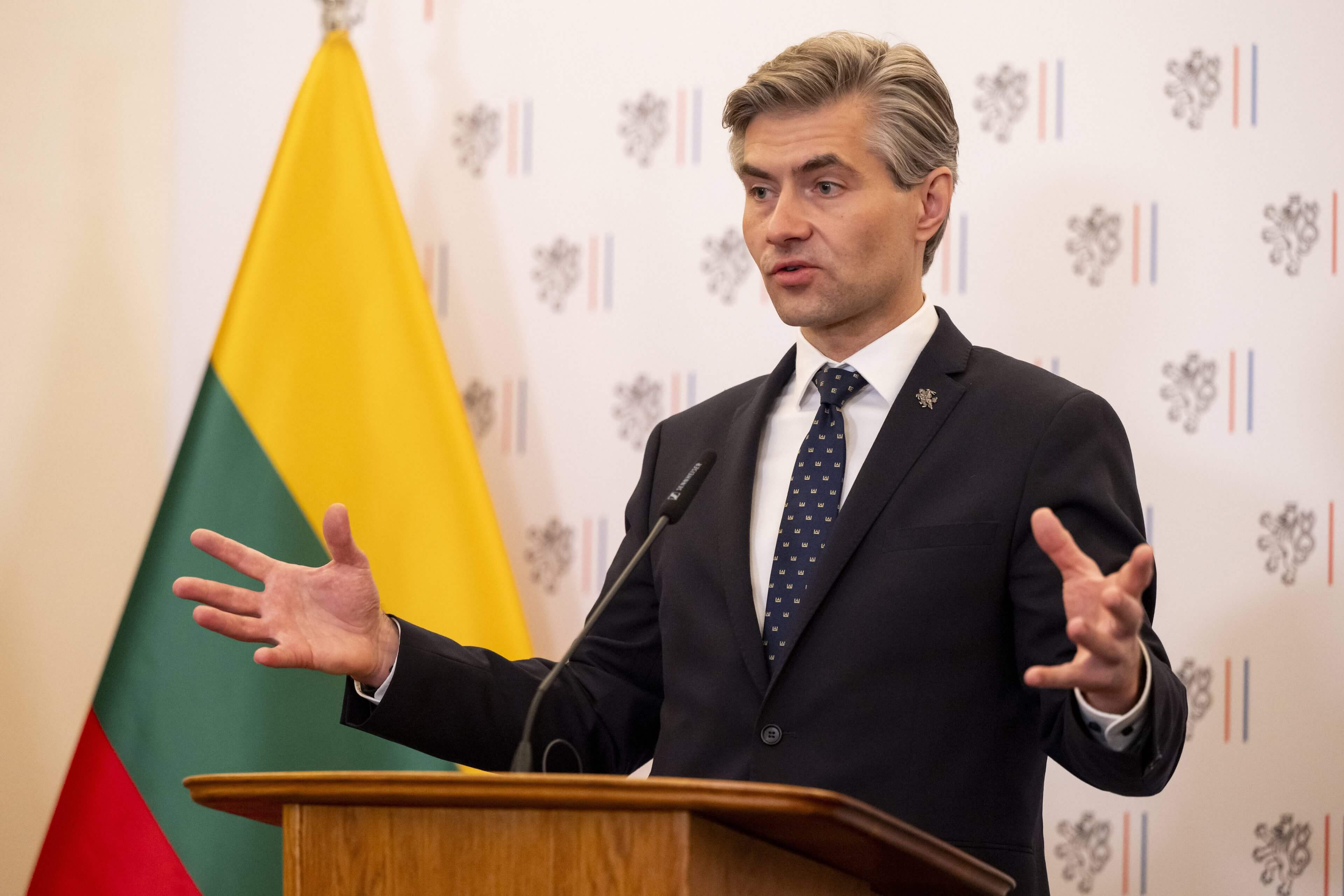 Litauens Außenminister Kestutis Budrys fordert nach dem Fund einer russischen Drohne die Hilfe der NATO an.IMAGO/CTK Photo