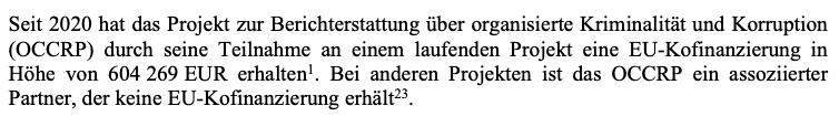 Brüssel unterstützt OCCRP nicht zum ersten Mal: Zwischen 2014 und 2023 flossen bereits rund 1,1 Millionen US-Dollar an das Netzwerk. Die aktuellen 604.000 Euro wurden im November 2024, fünf Monate nach der EU-Wahl bewilligt.