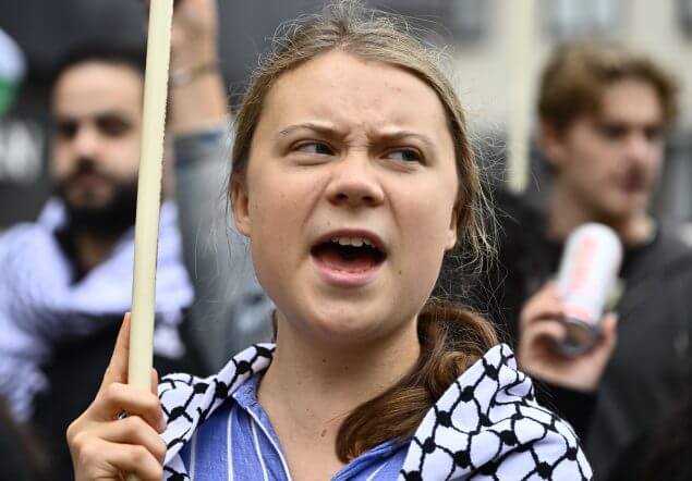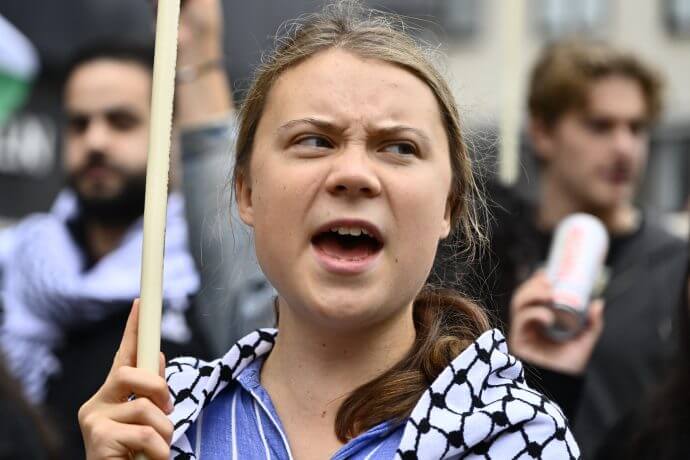 7. Oktober 2024: Am ersten Jahrestag des Hamas-Angriffs bezeichnete Thunberg bei einer Demo in Berlin Israels Handeln als „Genozid“ und warf dem jüdischen Staat Apartheid vor. Überdies attackierte sie die deutsche Polizei: „Ich finde nicht einmal die Worte, um zu sagen, wie wütend es mich macht zu sehen, wie Deutschland und deutsche Polizisten friedliche Demonstranten behandeln“, zitierte sie Bild. Die Polizei hingegen berichtete von massiven Ausschreitungen, Flaschenwürfen und israelfeindlichen Parolen. So viel zum Thema „friedliche Demonstranten“. Kritik an der Terrorherrschaft der Hamas? Fehlanzeige.