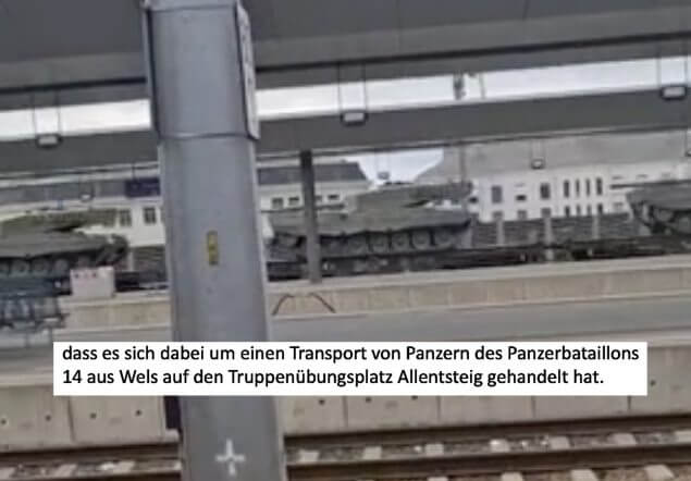 Eine Stellungnahme des Bundesheers zum gesichteten Panzer-Transport am Hauptbahnhof St. Pölten liegt vor – nach der Berichterstattung des exxpress.Rumble/Schreenshot