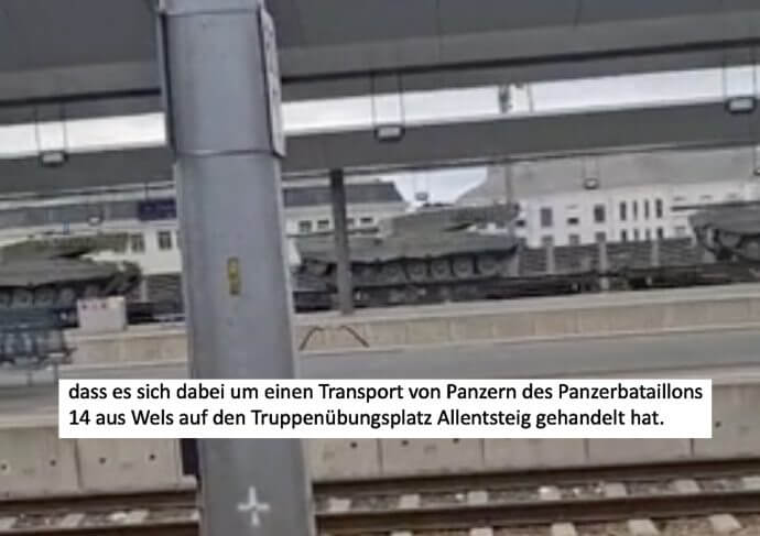 Der Transport sorgte für viele Fragen: Am 16. Mai wurden mehrere grau lackierte Leopard-2-Panzer ohne erkennbare Kennzeichen auf einem ÖBB-Zug beim Hauptbahnhof St. Pölten gesichtet. Der exxpress konfrontierte das Verteidigungs-, Innen- und Außenministerium sowie die ÖBB mit dem Vorfall. Die ausführlichste Rückmeldung kam zunächst vom Innenministerium, während das Bundesheer erklärte, nicht zuständig zu sein, mit der Begründung: Kein Zug ist gemäß Truppenaufenthaltsgesetz an diesem Tag angemeldet gewesen.