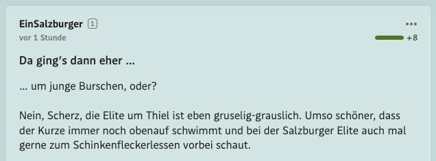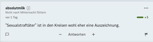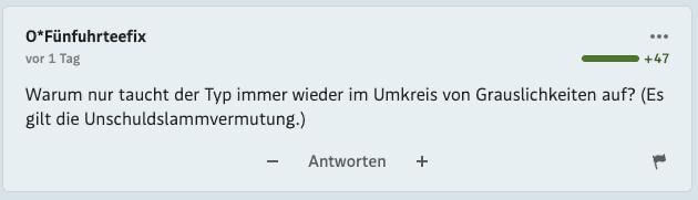 Tatsächlich gilt das Standard-Forum als eines der am stärksten moderierten des Landes. Was es über die „Community“ aussagt, dass selbst dieses Netz kaum ausreicht, um das Niveau oben zu halten, darf jeder für sich beurteilen.