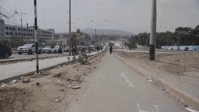 Der Radweg vor Ort ist erst im Jahr 2024 feierlich eröffnet worden. Es wurde sogar extra Rasen gepflanzt. Es gab das volle Zeremoniell mit Enthüllung eines Gedenksteins, traditionellem Tanz sowie rotem Band. Vertreter der deutschen Botschaft sowie der KfW posierten für die Presse. Nach wenigen Monaten ist von den Feierlichkeiten keine Spur mehr. Und es fehlen grundlegende Dinge wie Asphalt auf den Randstreifen oder einfach nur jemand, der mal den Dreck von den nicht genutzten Fahrradwegen fegt.