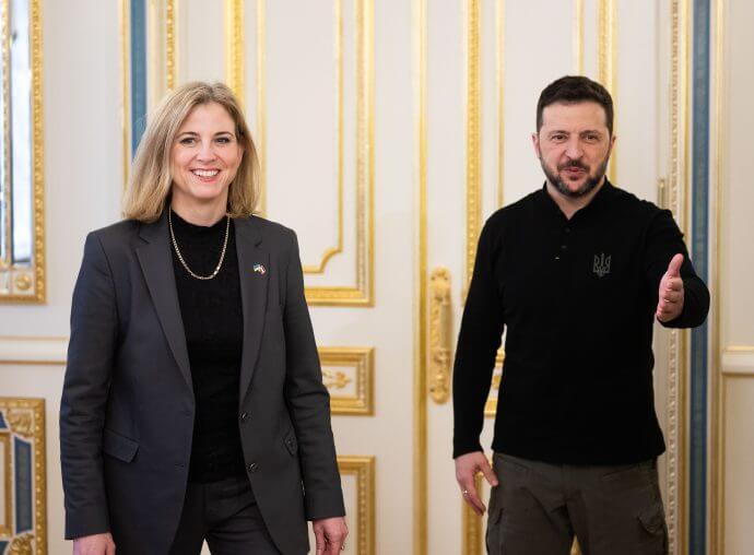 Außenministerin Beate Meinl-Reisinger (NEOS) besuchte im März den ukrainischen Präsidenten Wolodymyr Selenskyj.APA/MICHAEL GRUBER