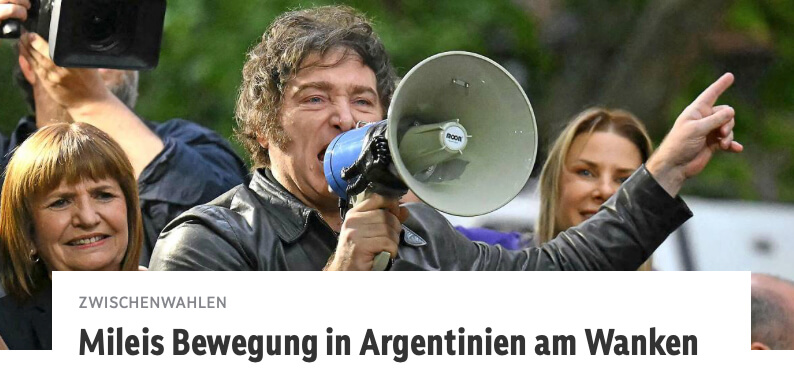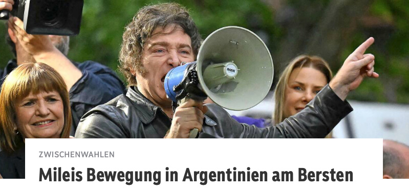 Zuerst titelte die Redaktion reißerisch: „Mileis Bewegung in Argentinien am Bersten.“ Mit anderen Worten: Der Zusammenbruch von Javier Mileis Partei La Libertad Avanza („Die Freiheit schreitet voran“) stehe unmittelbar bevor. Nach den ersten Wahlergebnissen folgte eine entschärfte Version: „Mileis Bewegung in Argentinien am Wanken.“