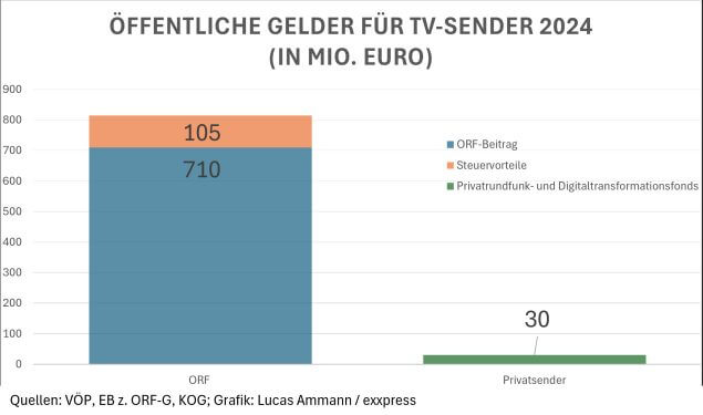Die Schieflage ist eklatant, wie Ammann vorrechnet: Der ORF bekommt jährlich 710 Millionen Euro aus Zwangsbeiträgen, hinzu kommen 105 Millionen Euro Steuervorteile – und rund 200 Millionen Euro Werbeeinnahmen. Zusammen ergibt das mehr als eine Milliarde Euro für den öffentlich-rechtlichen Rundfunk. Private Sender dagegen erhalten in Summe lediglich 30 Millionen Euro Förderung im Jahr. „Der stärkste Mitbewerber – ServusTV – bekommt zwei Millionen Euro aus dem Privatrundfunkfonds. Das sind 0,2 Prozent“, kritisiert Ammann.