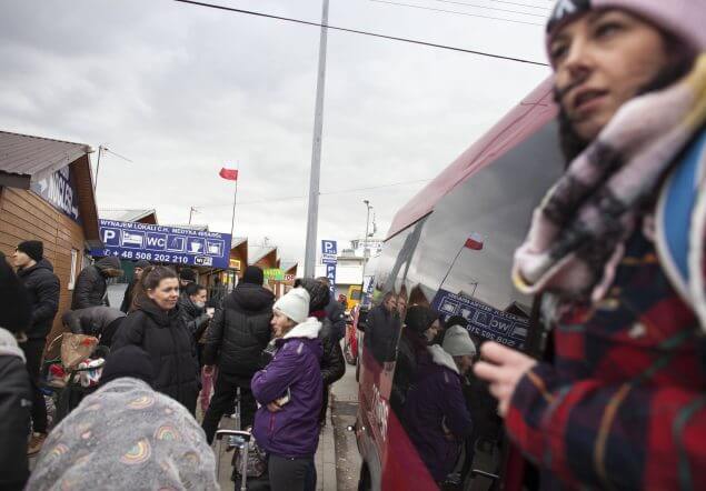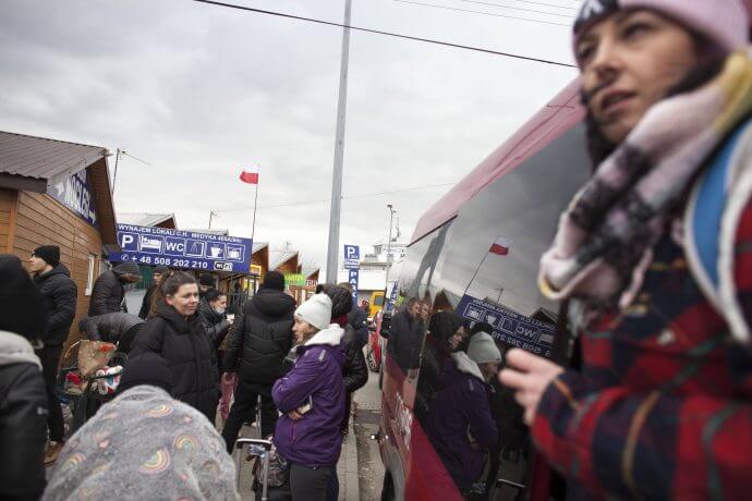 Ukrainische Flüchtlinge an der Grenze zu Polen. Insgesamt leben in Polen fast eine Million ukrainischer Bürger mit Schutzstatus.IMAGO/NurPhoto