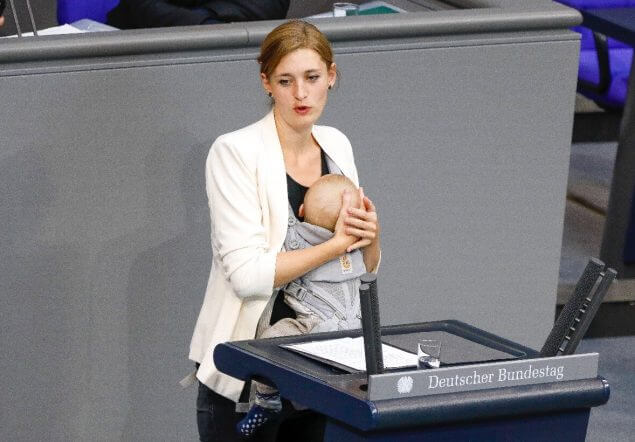 Hanna Steinmüller von den Grünen hat Geschichte geschrieben: Sie ist die erste Bundestagsabgeordnete, die während ihrer Rede im Plenarsaal ihr Baby auf dem Arm hielt.