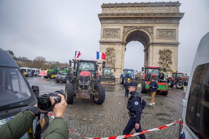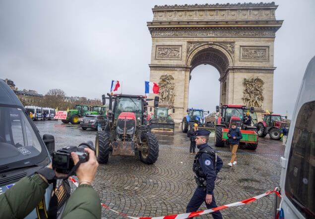 Heute Morgen besetzten Bauern den Arc de Triomphe, die Champs-Élysées und das Gebiet um den Eiffelturm.