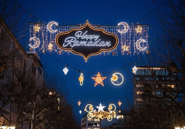 Bereits zum dritten Mal schmückt die Stadt anlässlich des Ramadan Teile der Innenstadt mit Halbmond-Symbolen, Sternen, traditionellen Fanoos-Laternen und dem Schriftzug „Happy Ramadan“. Die Beleuchtung wird am Dienstag um 18 Uhr in der „Freßgass“, einem Abschnitt der zentralen Fußgängerzone, eingeschaltet.