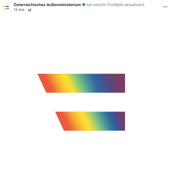 PS: Auch das Sozialministerium hat sein Profilbild in eine Regenbogenfahne geändert – doch das blieb bislang unbeachtet. Schließlich repräsentiert es Österreich nicht im Ausland.