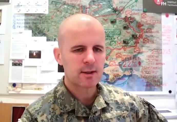Der Oberst sieht darin eine Wiederholung sowjetischer Taktik. Schon im Kalten Krieg habe Moskau versucht, zunächst die Bevölkerung zu demoralisieren, dann den Staat zu destabilisieren, um schließlich mit dem Versprechen der „Wiederherstellung der Ordnung“ einzumarschieren.