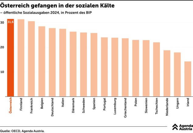 Damit hat sich Österreich vom Mitläufer zum internationalen Spitzenreiter entwickelt. Die Kombination aus demografischem Wandel, massiven Covid-Krisenmaßnahmen, politischer Ausgabenkontinuität und schwachem Wirtschaftswachstum katapultierte das Land an die Spitze. Heute gilt Österreich damit als der teuerste Sozialstaat der Welt – kein anderes Land weist aktuell eine höhere Sozialquote aus.
