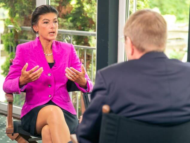 Beim Thema Meinungsfreiheit fühlt sich BSW-Chefin Sahra Wagenknecht immer öfter an die DDR erinnert, sagt sie bei „Schuler! Fragen, was ist“. Als jüngst der Spiegel eine ausführliche Geschichte über die Geburtstagsfeier von Molkerei-Chef Theo Müller brachte, auf der auch AfD-Chefin Alice Weidel mit Partnerin und Kindern anwesend war, sei ein weiterer Tiefpunkt erreicht worden, sagt sie.