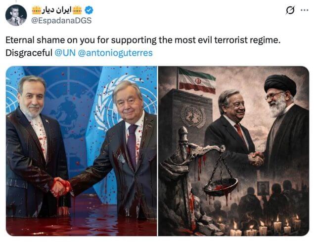 @antonioguterres The UN under you didn’t just fail. You buried its credibility.#IranMassacre pic.twitter.com/24k50p6h3u