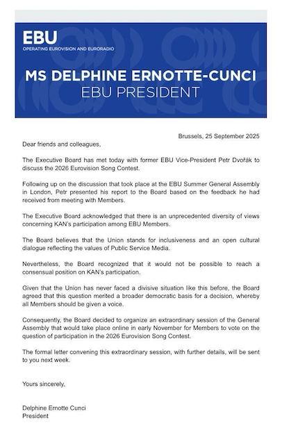 Im November wird die Europäische Rundfunkbehörde (EBU) entscheiden, ob Israel beim 70. Song Contest in Wien teilnehmen darf. Der Beschluss, eine geheime Abstimmung durchzuführen, fiel am Donnerstagnachmittag in einer Aufsichtsratssitzung. Auslöser der politischen Debatte sind die Auswirkungen des Hamas-Übergriffs auf Israel und diesen Reaktion im Gazastreifen. Diese Ereignisse haben internationale Spannungen ausgelöst, die nun auch den renommierten Musikwettbewerb betreffen.