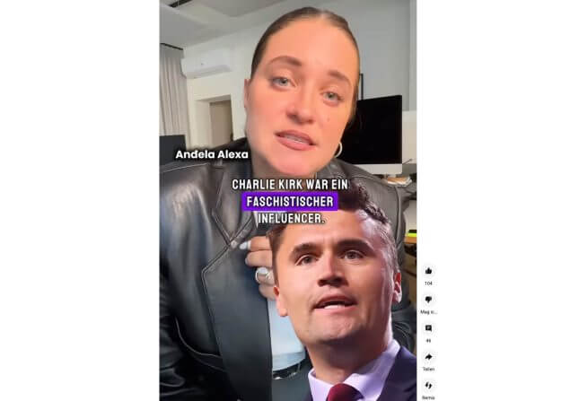Die Sprecherin im Momentum-Video fragt entrüstet: „Warum schaffen es Medien nicht, ihn so zu bezeichnen?“ Gemeint ist: Warum weigern sich große Medien, Kirk pauschal als Faschisten abzustempeln. Sie kritisiert Zeit, Tagesschau und andere, weil diese Kirk als „konservativen Jungstar“ oder „Vertreter der konservativen Bewegung“ einordnen – statt ihn am äußersten rechten Rand festzunageln.