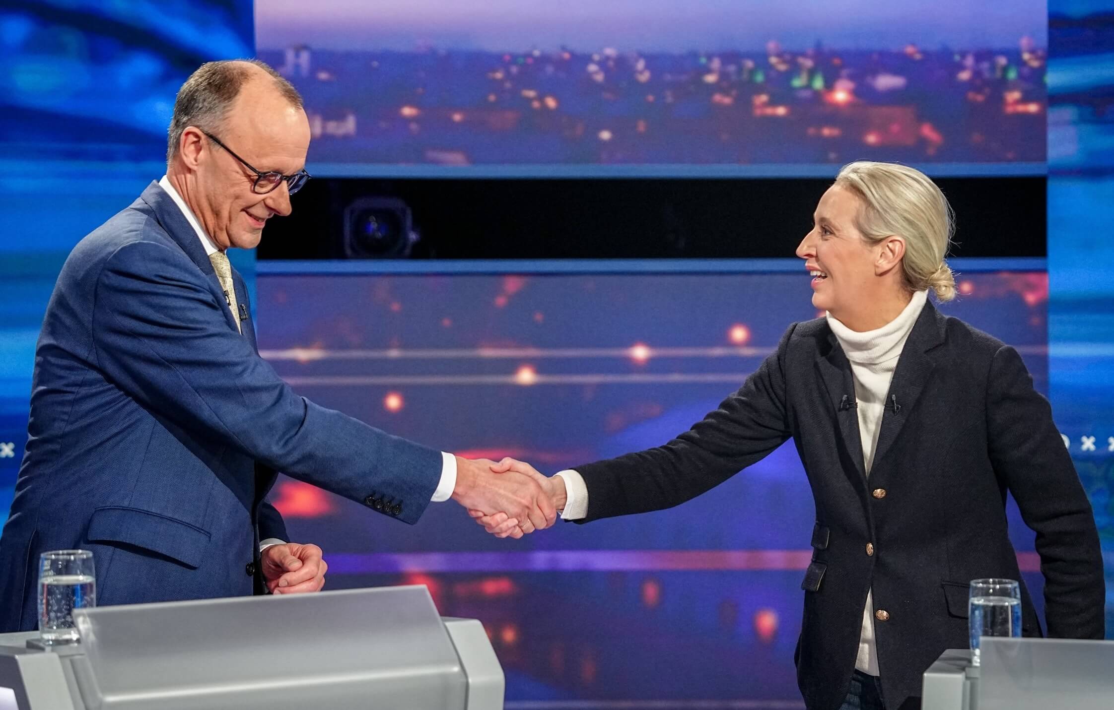 CDU-Chef Friedrich Merz (l.) und AfD-Chefin Alice Weidel (r.): Die Brandmauer könnte vor allem für die CDU zu teuer werden, prognostiziert Prof. Rieck.APA/AFP/POOL/Kay Nietfeld