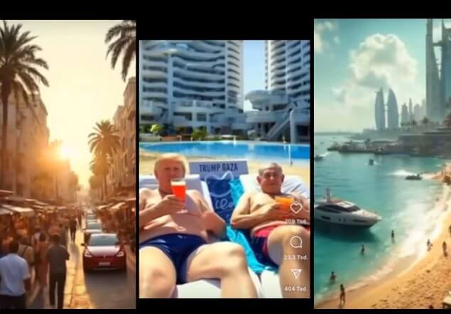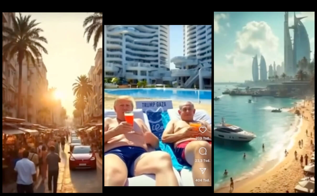 Nun hat Donald Trump auf seiner Plattform Truth Social enthüllt, wie er sich Gaza im Jahr 2025 vorstellt: Kinder spielen in dem KI-generierten Video am Strand einer modernen Stadt, durch die futuristische Tesla-ähnliche Autos gleiten, während Bauchtänzerinnen für Unterhaltung sorgen. Mittendrin taucht Elon Musk auf, umgeben von einem schwebenden Geldregen, während Trump selbst entspannt mit Premierminister Benjamin Netanjahu am Pool Cocktails schlürft.