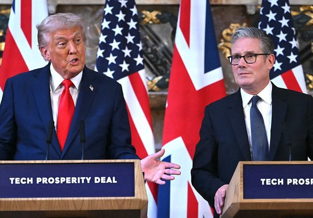 US-Präsident Donald Trump (l.) und Premierminister Keir Starmer (r.) bei einer Pressekonferenz in Chequers, Aylesbury, während Trumps zweitem Staatsbesuch im Vereinigten Königreich.APA/AFP/ANDREW CABALLERO-REYNOLDS