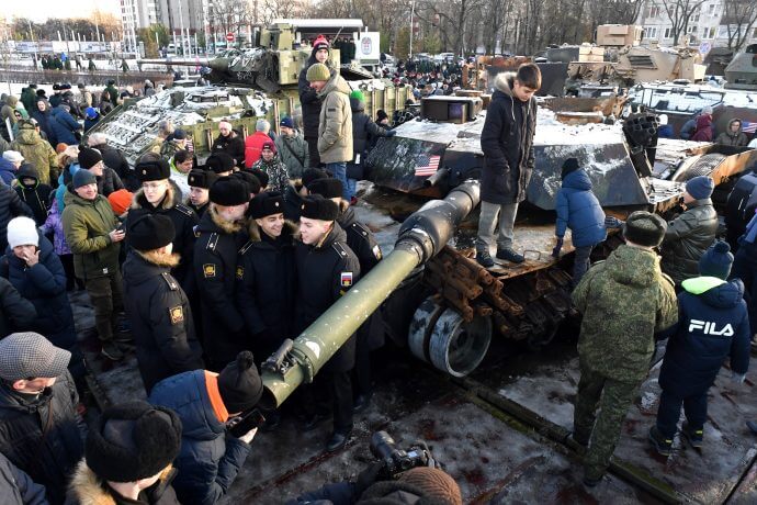 Auch der hochgerüstete M1-Abrams-Panzer fiel kläglich durch: „beunruhigend anfällig für russische Drohnen“, oft defekt und schließlich aus dem Kampfeinsatz genommen. Mehrere wurden zerstört, mindestens ein Exemplar von den Russen erbeutet und demonstrativ in Moskau in einem Park ausgestellt – neben anderen Nato-Waffen.