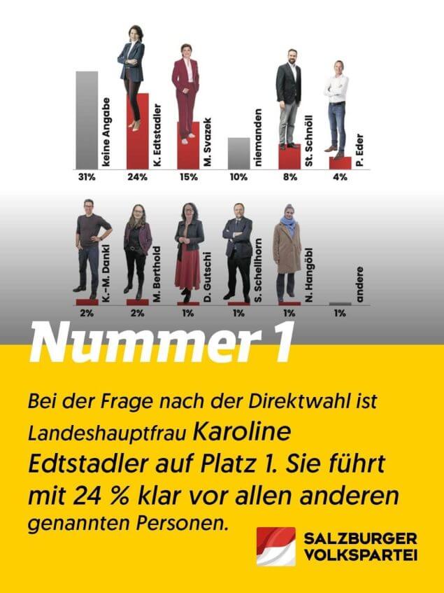 Auch bei einer fiktiven Direktwahl um das Amt der Landeshauptfrau zeigt sich ein ähnliches Bild. Karoline Edtstadlerkäme laut Umfrage auf 24 Prozent und würde das Duell für sich entscheiden. Ihre stärkste Verfolgerin, Marlene Svazek, bleibt mit Abstand dahinter, kann aber dennoch ein beachtliches Ergebnis erzielen.