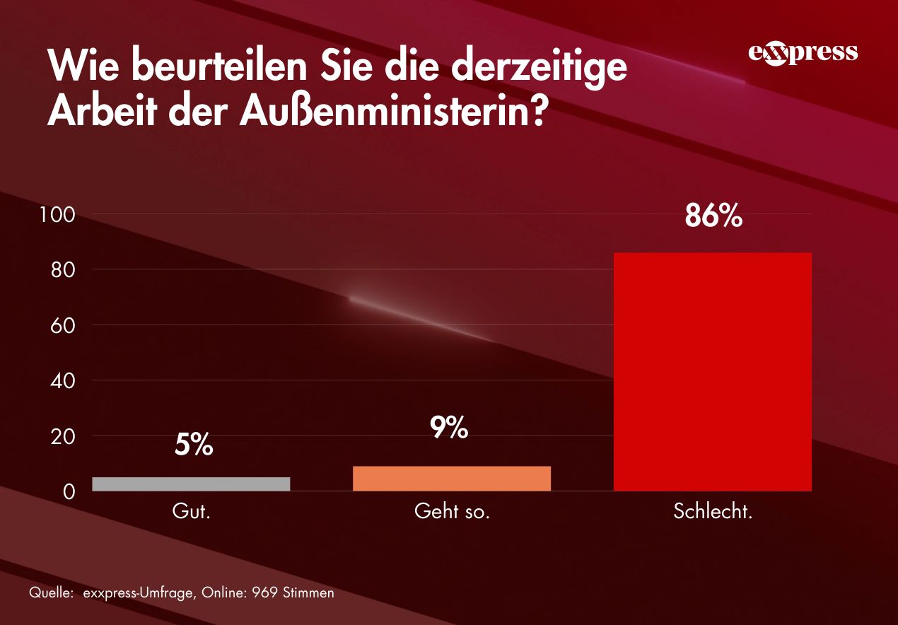 Eine aktuelle exxpressTV-Umfrage zur Arbeit von Außenministerin Beate Meinl-Reisinger in der Nahost-Krise zeigt ein deutlich kritisches Stimmungsbild unter den Lesern. Hintergrund ist die derzeit laufende Organisation von Rückholaktionen für österreichische Staatsbürger aus der Krisenregion.