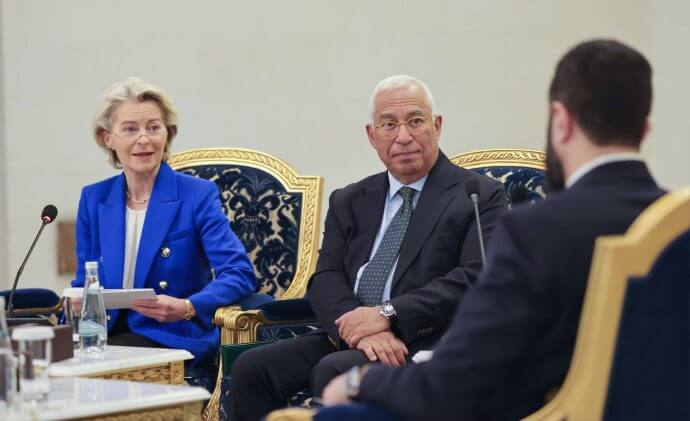 Die Visite von der Leyens gemeinsam mit EU-Ratspräsident António Costa erfolgte kurz nachdem sich in der nordsyrischen Großstadt Aleppo Soldaten der islamistischen Übergangsregierung und kurdische Kämpfer tagelang Gefechte geliefert haben.