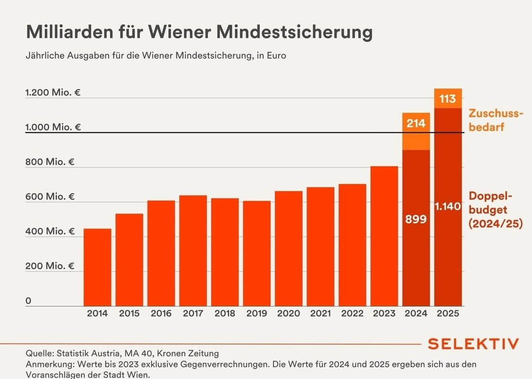 Wien ist das soziale Epizentrum Österreichs: 73 Prozent der Sozialhilfe- und Mindestsicherungsbezieher leben hier. Die Folge ist eine Kostenlawine – seit 2014 haben sich die Ausgaben von rund 400 Millionen auf etwa 1,25 Milliarden Euro verdreifacht. Fast jeder zweite Euro geht an einen Schutzberechtigten.