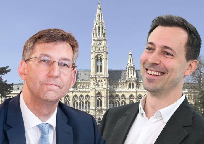 Generalsekretär Nico Marchetti (rechts) sichert sich seinen Einfluss in Wien. Wiener ÖVP Parteiobmann Markus Figl (links) soll viel von Marchettis Meinung halten.IMAGO/CHROMORANGE / APA/GEORG HOCHMUTH/HELMUT FOHRINGER