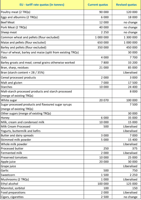 Wie exxpress exklusiv erfuhr, wurden die Importmengen für sensible Agrarprodukte wie Fleisch und Zucker nur geringfügig erhöht, viele sogar gar nicht. So bleiben die zollfreien Einfuhrmöglichkeiten für Rind-, Schweine- und Schaffleisch unverändert auf dem niedrigen Vorkriegsniveau.