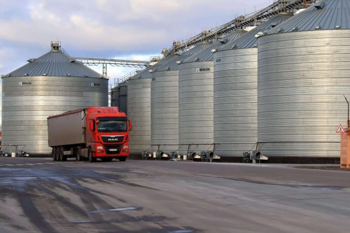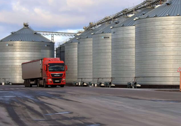 Ein Lkw wird auf dem Gelände eines Landwirtschaftsbetriebs in der ukrainischen Region Tschernihiw mit Getreide beladen.IMAGO/NurPhoto