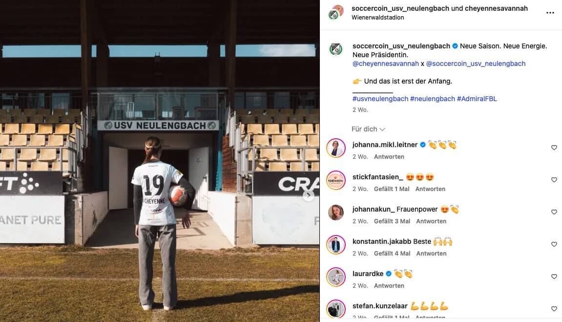 Ein persönlicher Austausch mit der neuen Präsidentin Cheyenne Ochsenknecht habe zwar noch nicht stattgefunden, sei aber bald geplant: „Ich freue mich darauf, sie kennenzulernen. Das wird sicher eine tolle Sache.” Mit dem Trainer Andreas Ogris wird der sportliche Erfolg nicht lange auf sich warten lassen; für die mediale Aufmerksamkeit und eine gehörige Portion Glamour sorgt auf alle Fälle bereits seine prominente Präsidentin.